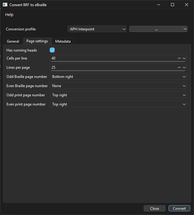 The BRF to eBRL Converter is a Windows application designed to transform traditional BRF files into modern eBraille documents. It preserves the original formatting of the BRF while enhancing the file with essential eBraille components including dynamic formatting and improved navigation. If tactile graphics are available, the converter seamlessly splices them into the output, ensuring a complete and accessible document. Conversions are handled one file at a time, giving users precise control over the process. During conversion, users can add or edit metadata to enrich the final eBRL file. To streamline repeated tasks, the converter supports user-defined profiles that store formatting preferences, making future conversions faster and more consistent. This tool bridges the gap between legacy BRF materials and the eBraille standard, simplifying workflows for educators, transcribers, and braille readers.