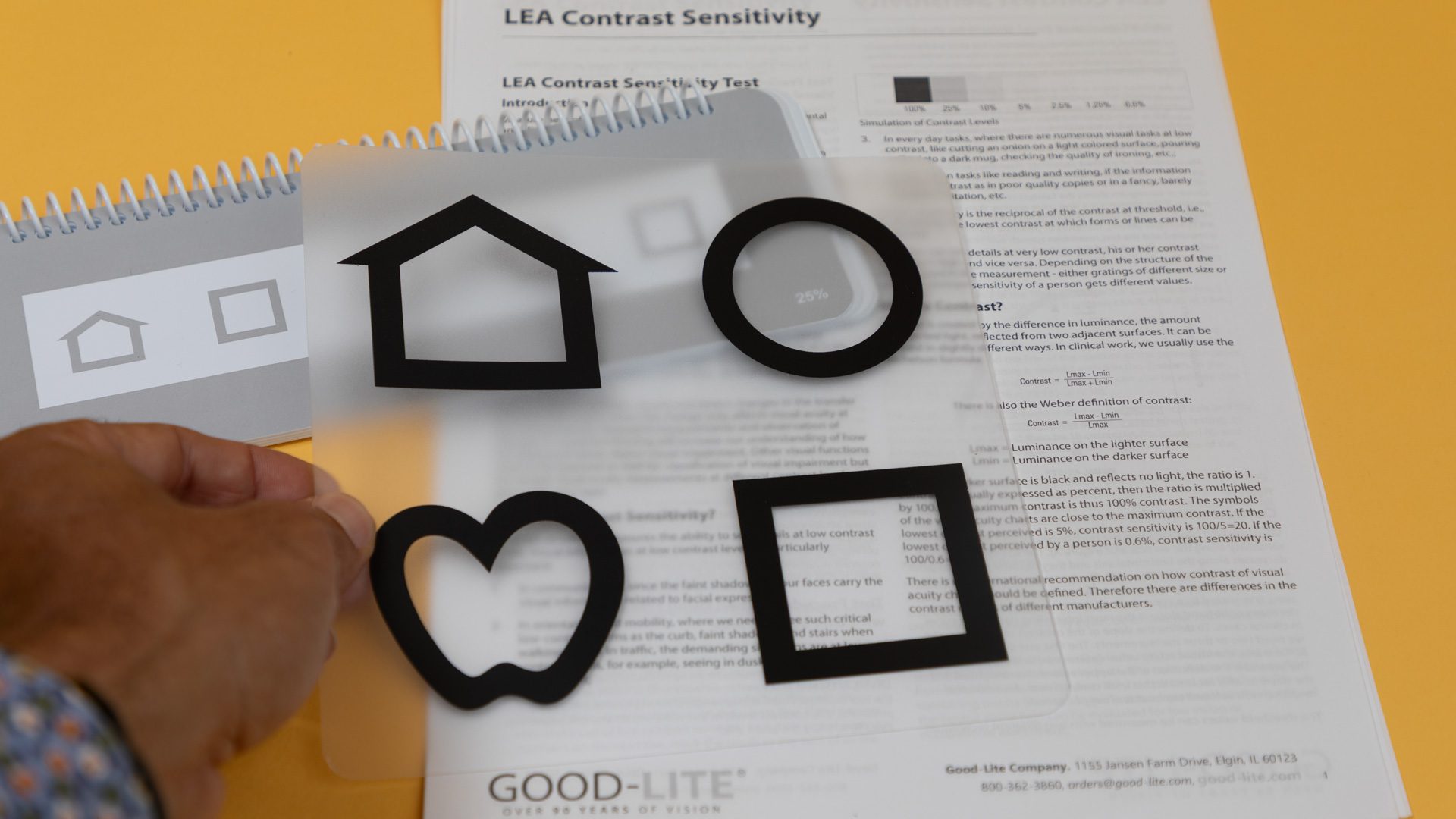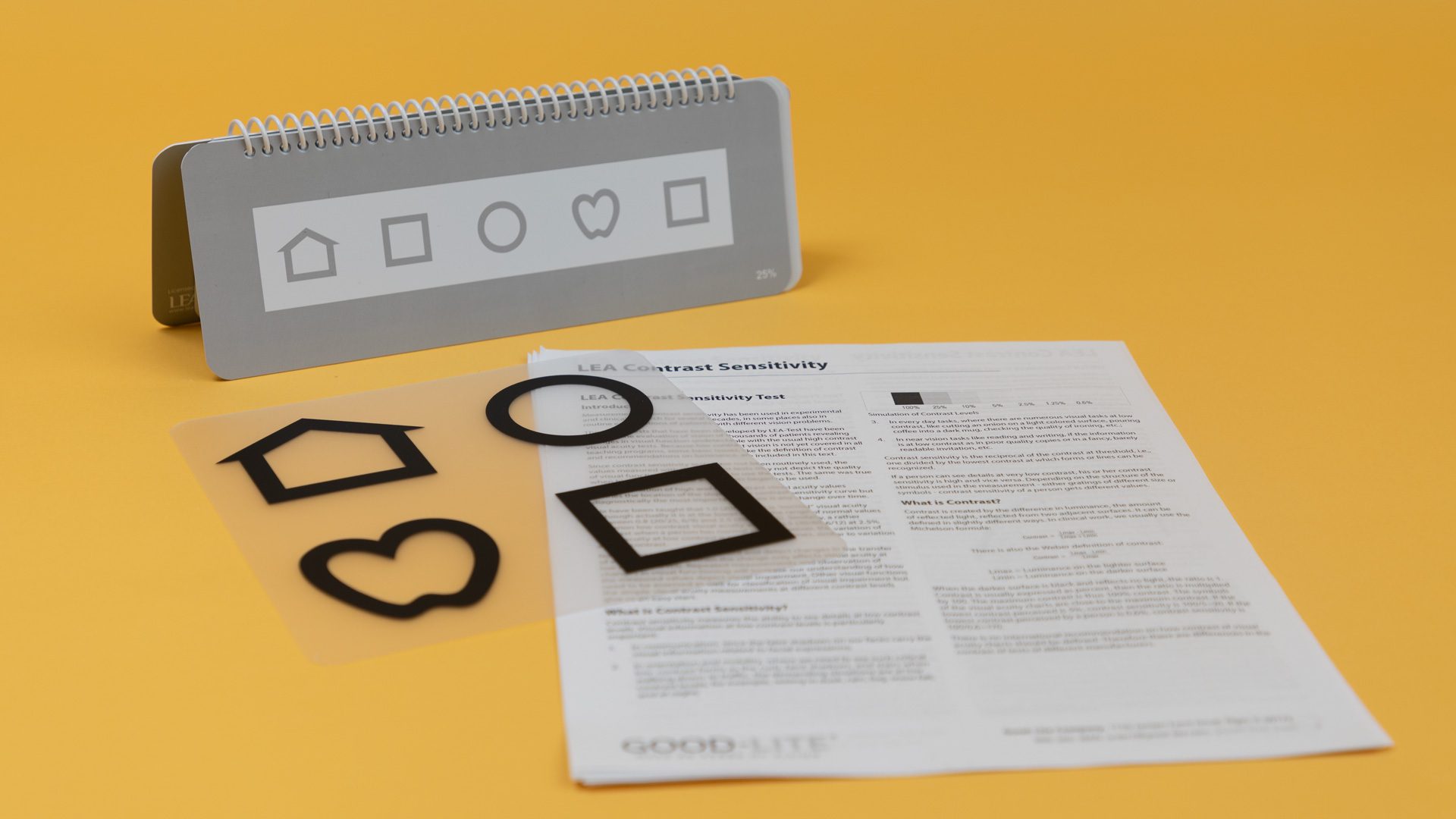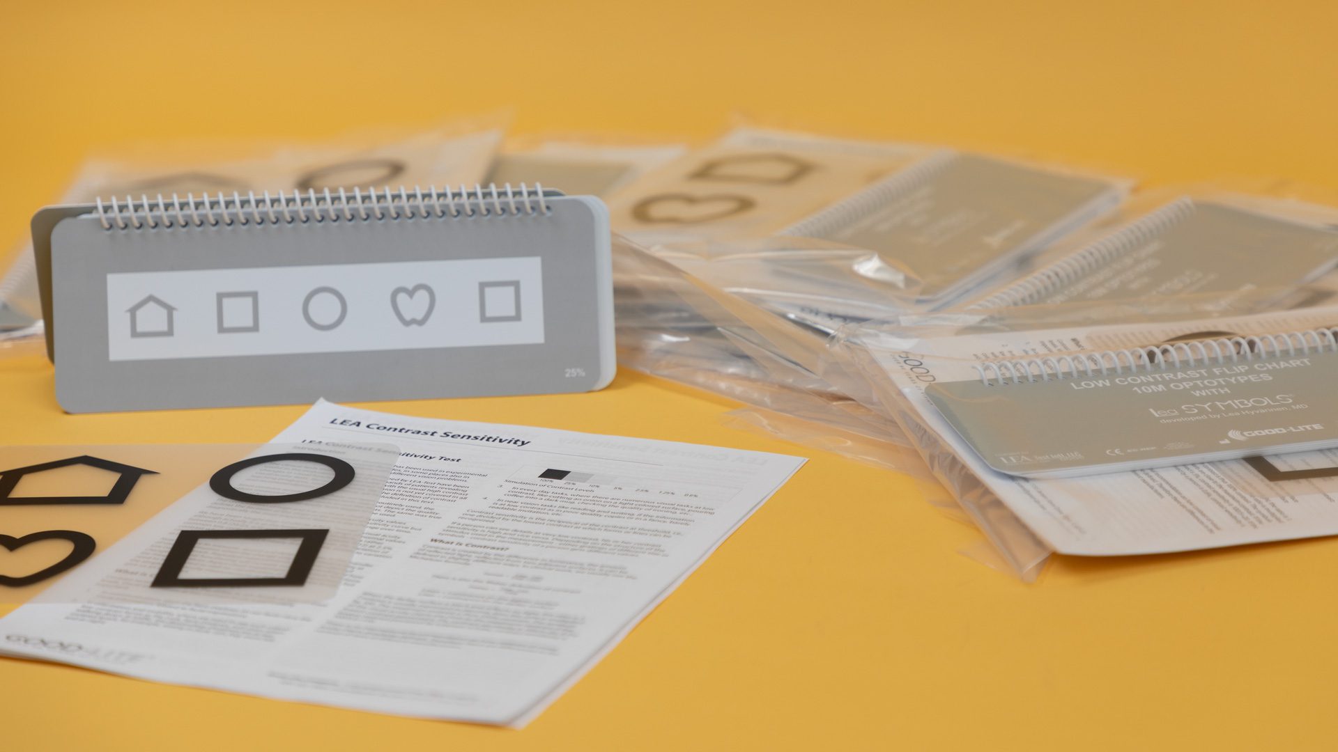 This kit will include LEA Symbol Charts, a test for quickly measuring low contrast visual acuity at 25%, 10%, 5%, 2.5%, and 1.25% contrast by measuring the distance at which the symbols are seen. This includes a guide, recording form, and video, as well as guidance on calculating visual acuity (VA) and a conversion table for Snellen equivalent VA values.