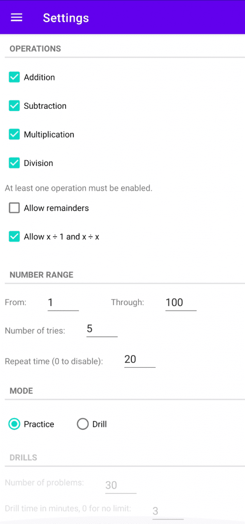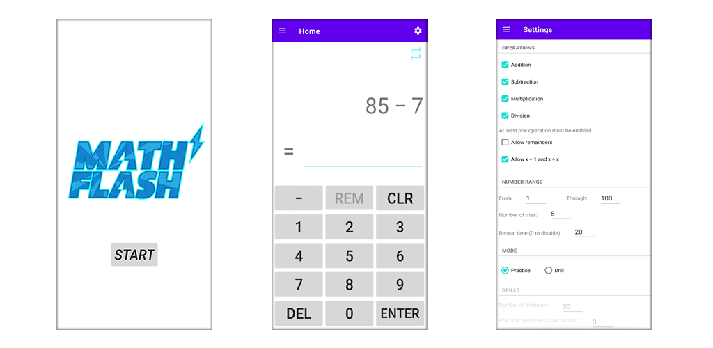Math Flash provides fun drills and practices for simple math problems. The app is both self-voicing and accessible with the screen reader TalkBack. Math Flash announces each problem as it comes up. Teachers, parents, and students can set the range of numbers, the mathematical operations, the number of tries, and more.
