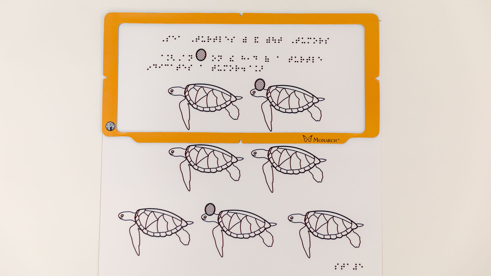To use, place the frame over an embossed graphic and explore only the portion within the cutout. Then reposition the frame as needed to uncover new sections, just like navigating a digital tactile screen.
