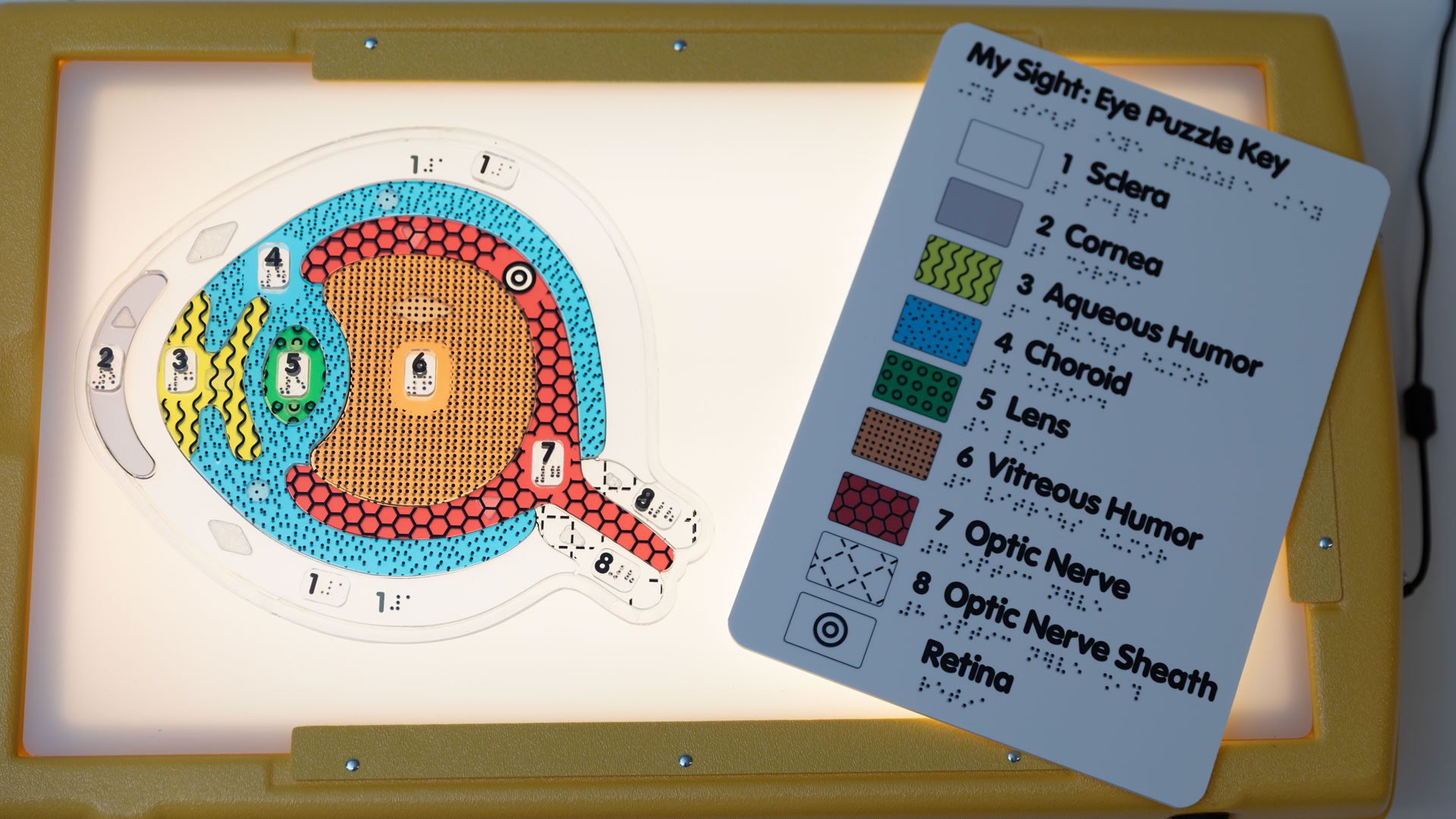 This colorful acrylic puzzle is part of the My Sight program, designed to help K–12 students of all abilities learn eye anatomy, how vision works, and common eye conditions. Intended to be used with a light box such as APH’s LED Mini-Lite Box, this puzzle is perfect for teaching students how to describe their visual abilities and confidently communicate their needs at school, home, and beyond.