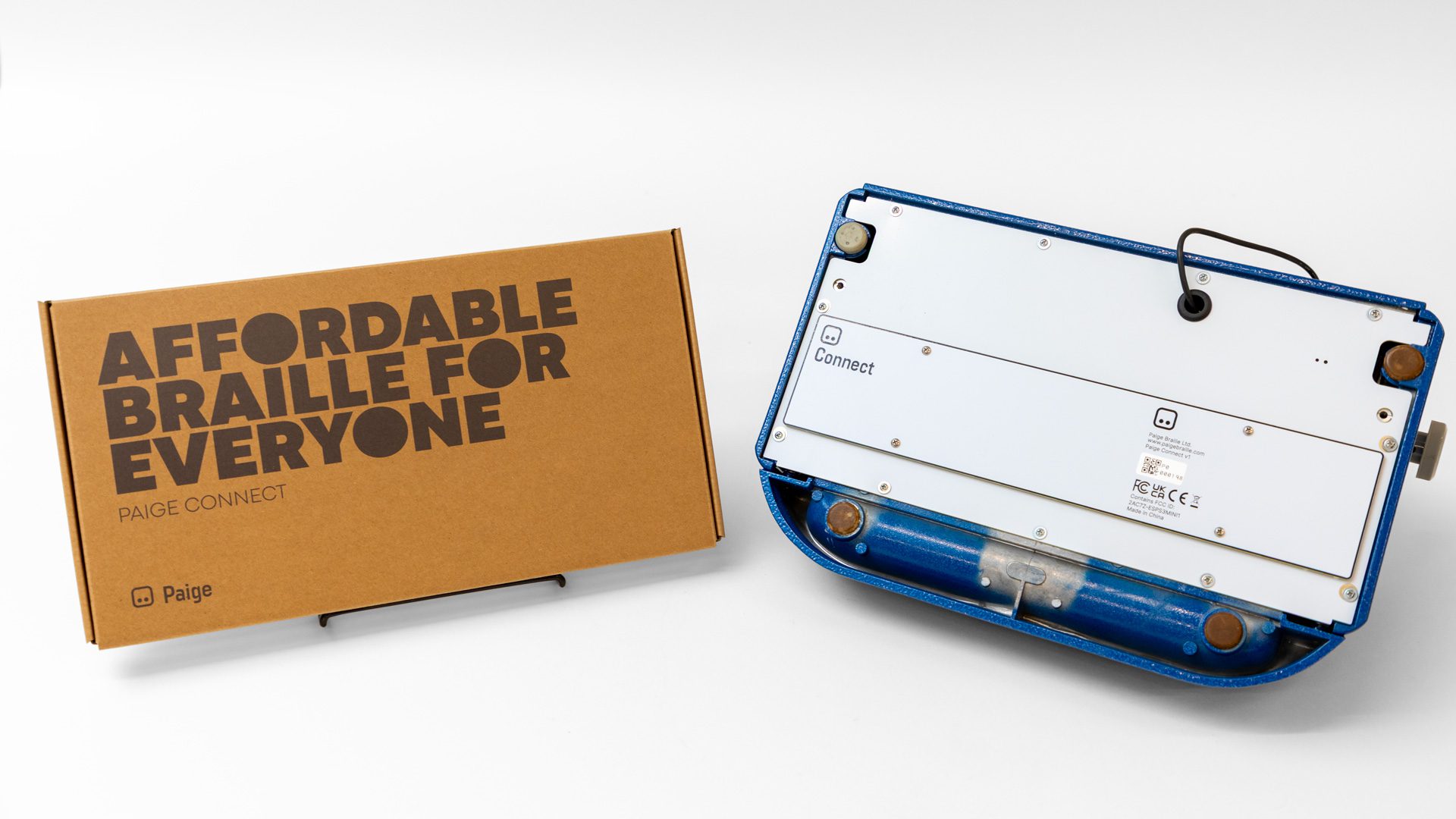 The thin laminate board with optical sensors connects to the bottom of your traditional brailler, replacing its base. Through a wireless connection, Paige Connect allows a computer or mobile device to display what is being written using six-key entry on your braille writer. For learners who are new to braille, this opens many opportunities for interactive learning, such as instant audio feedback and quick translation for a sighted teacher or colleague. Paige Connect is powered by a USB-A cord and connects via Bluetooth, offering flexibility and compatibility with a variety of devices.